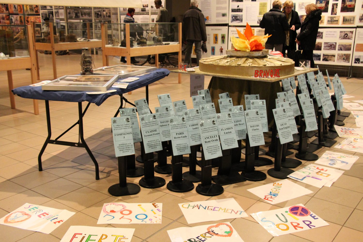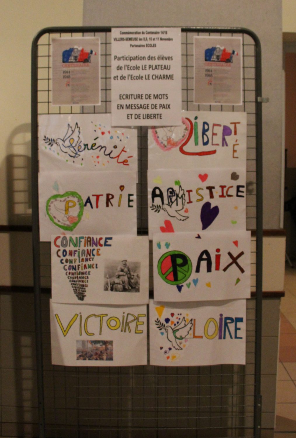 Le travail important sur les soldats nés à Villers-Semeuse du Collège Jules Leroux et les mots sur la liberté des écoles Le Charme et Le Plateau étaient aussi exposés pour continuer l’hommage d’hier.