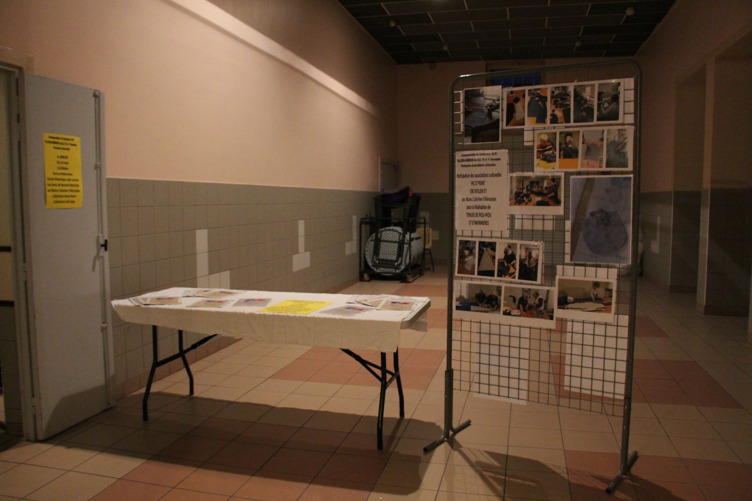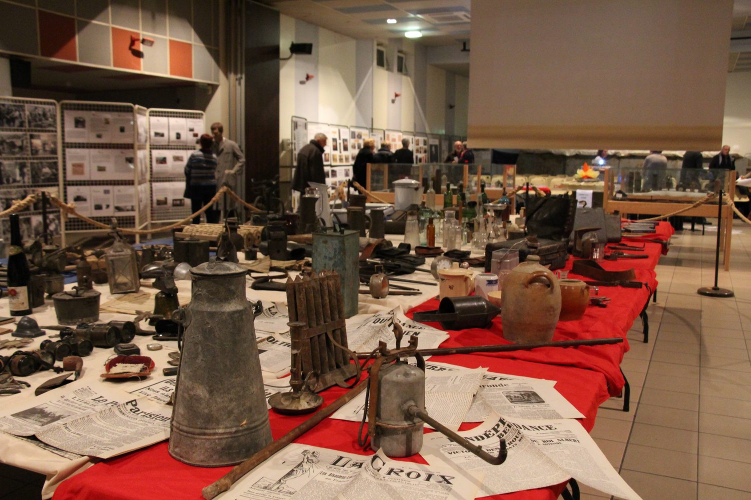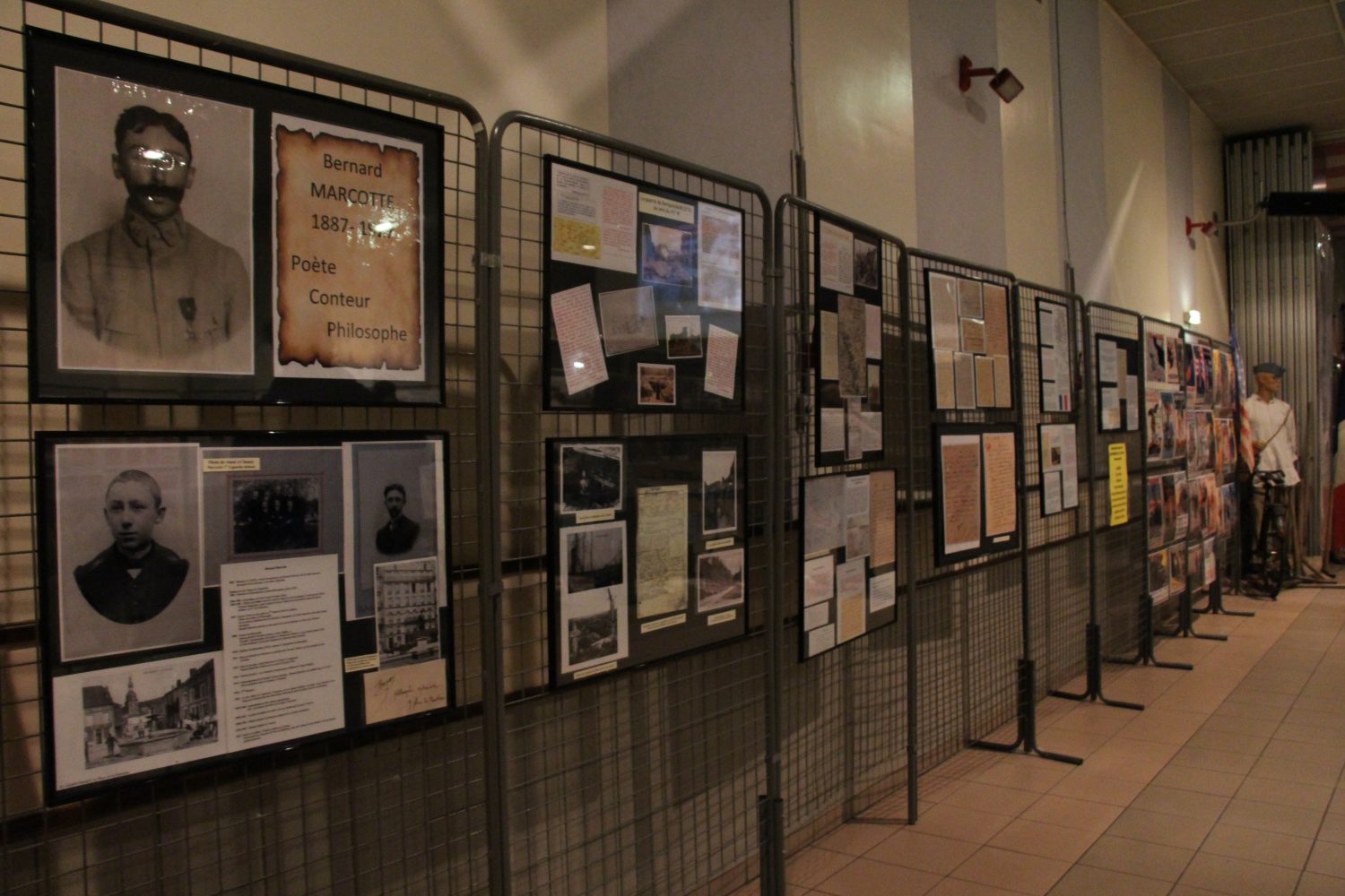 La salle des fêtes faisait découvrir, ce 10 novembre 2018 toute la journée, diverses expositions privées, matériel, textes, journaux et livres de l’association le Miroir, le Cercle Historique Jules Leroux, Terres Ardennaises, les amis de Bernard Marcotte, Henri Binet et de la mairie sur le centenaire 14-18 avec une présence nombreuses des habitants.