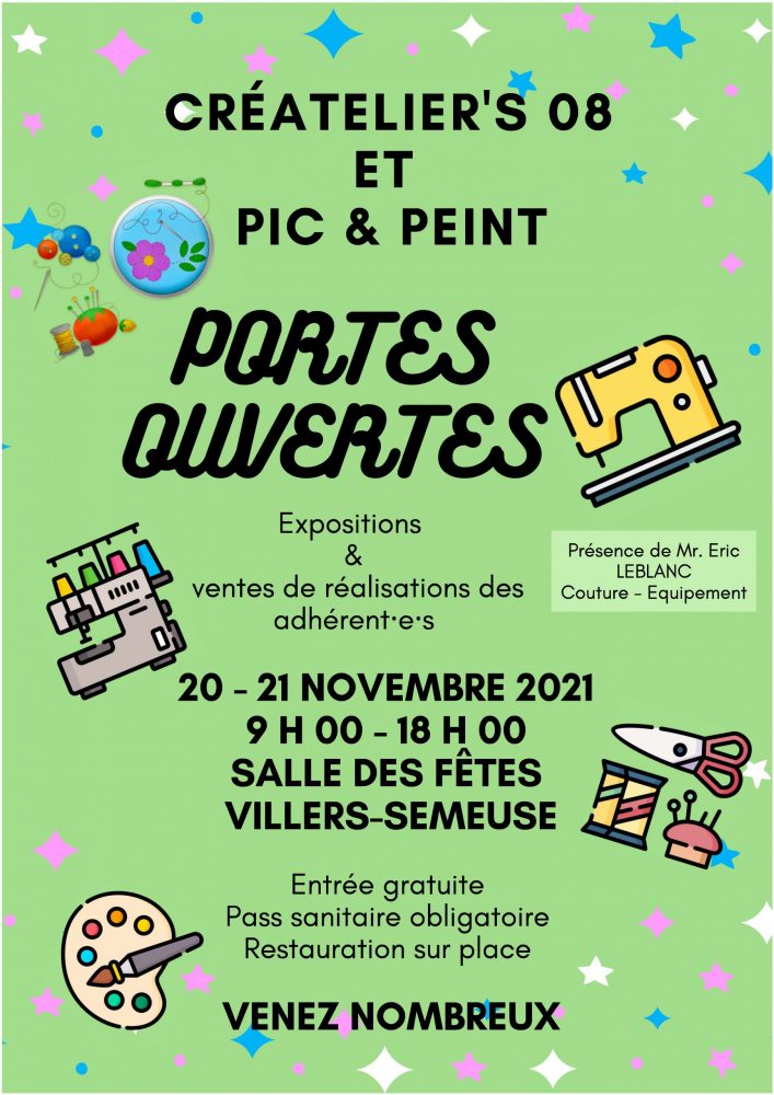 Portes ouvertes Cré’ateliers 08 et Pic & Peint les 20 et 21 novembre 2021 de 9h0à à 18h00 à la salle ds fêtes