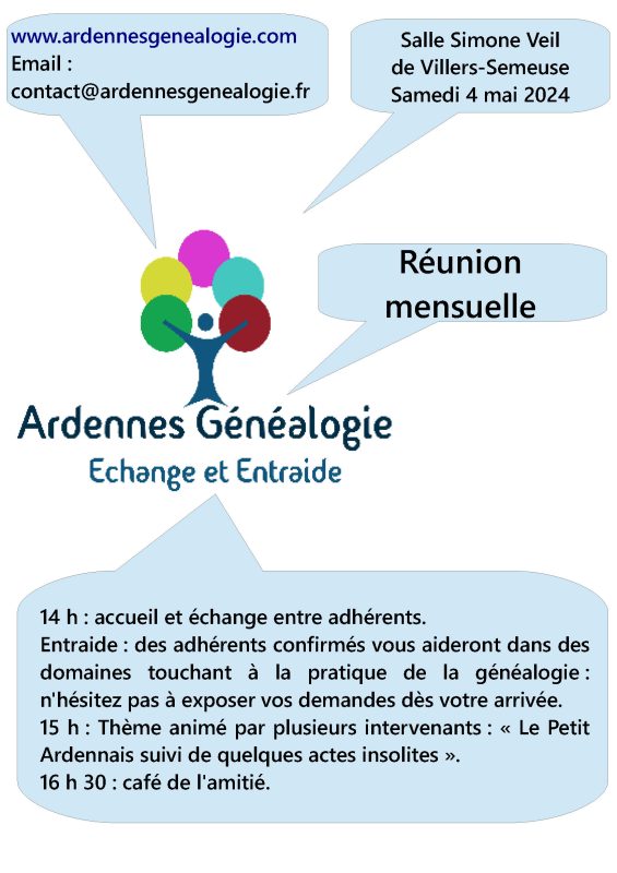 Réunion mensuelle d’Ardenne Généalogie