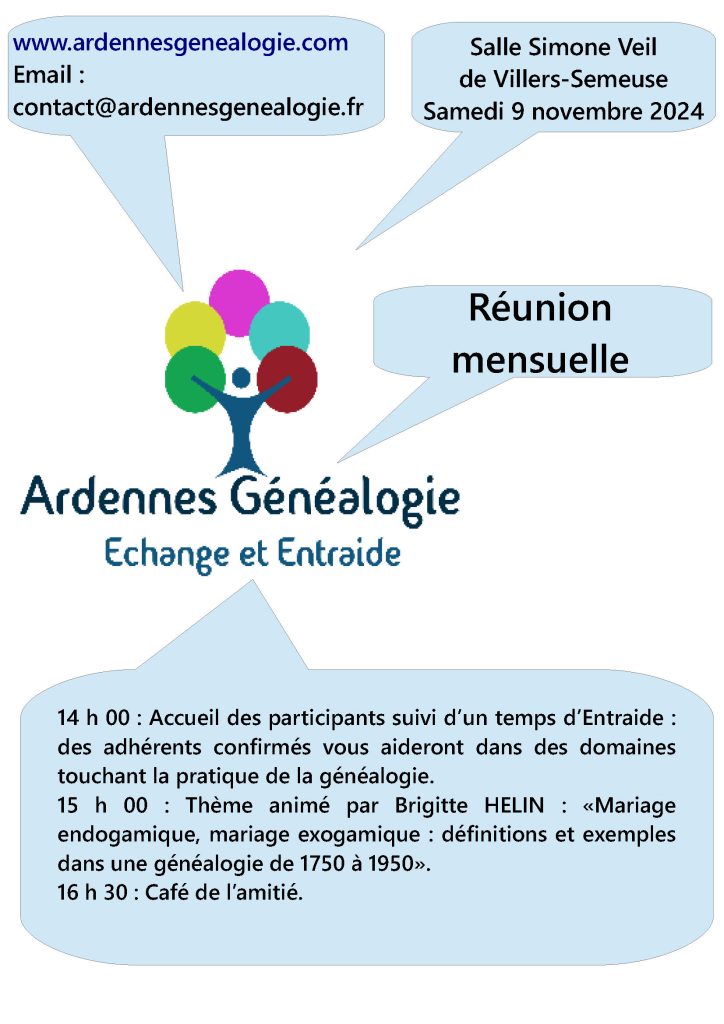 Réunion mensuelle d’Ardenne Généalogie