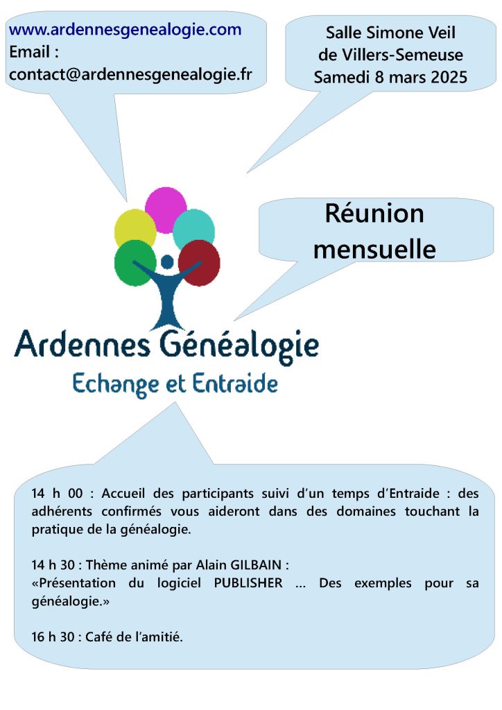 Réunion mensuelle d’Ardennes Généalogie