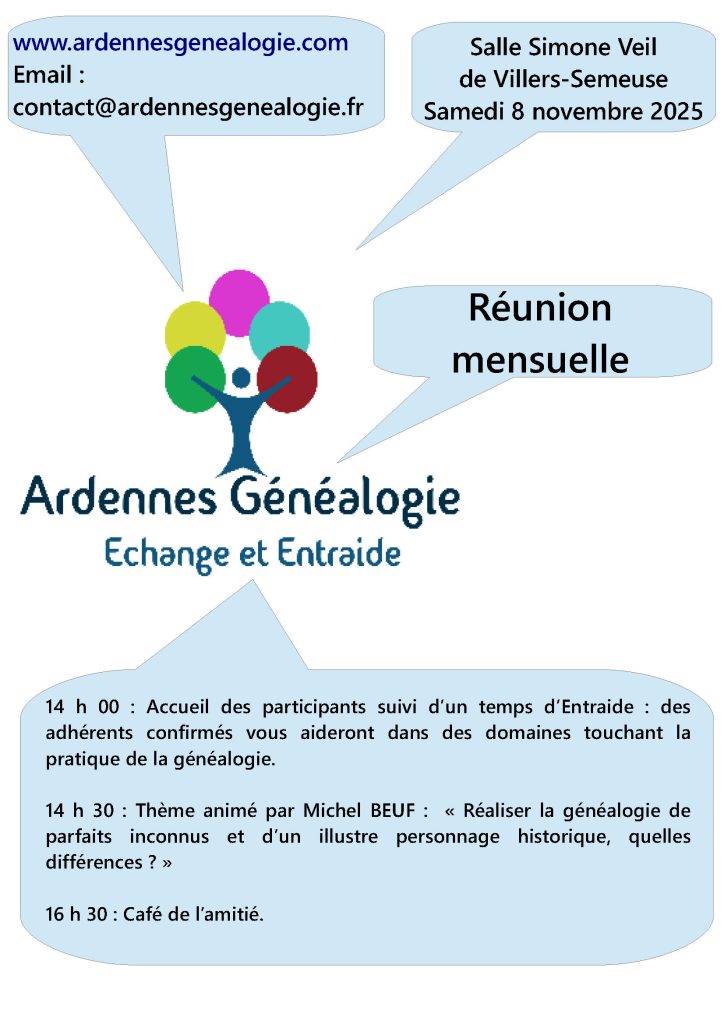 Réunion mensuelle d’Ardennes Généalogie