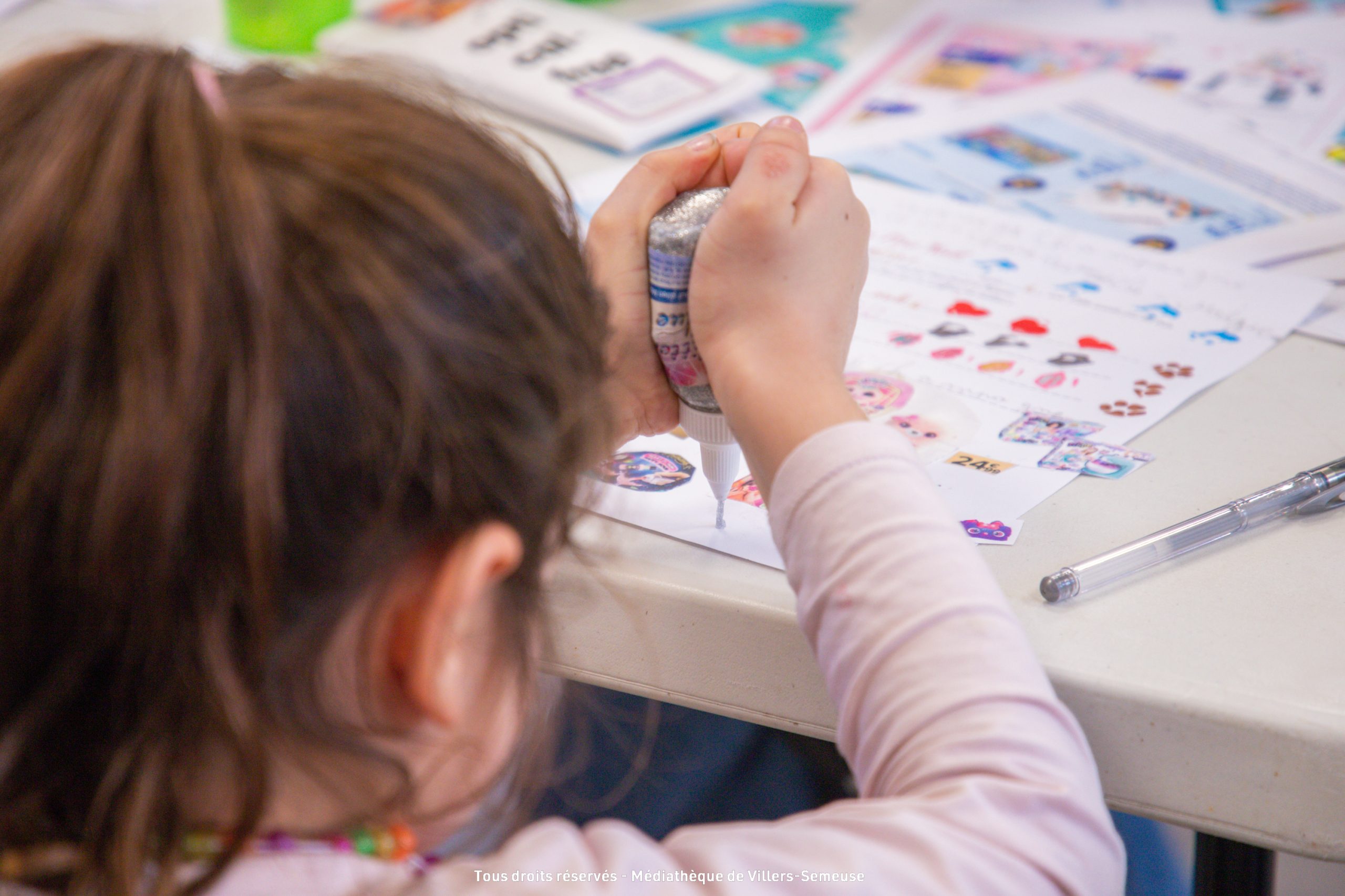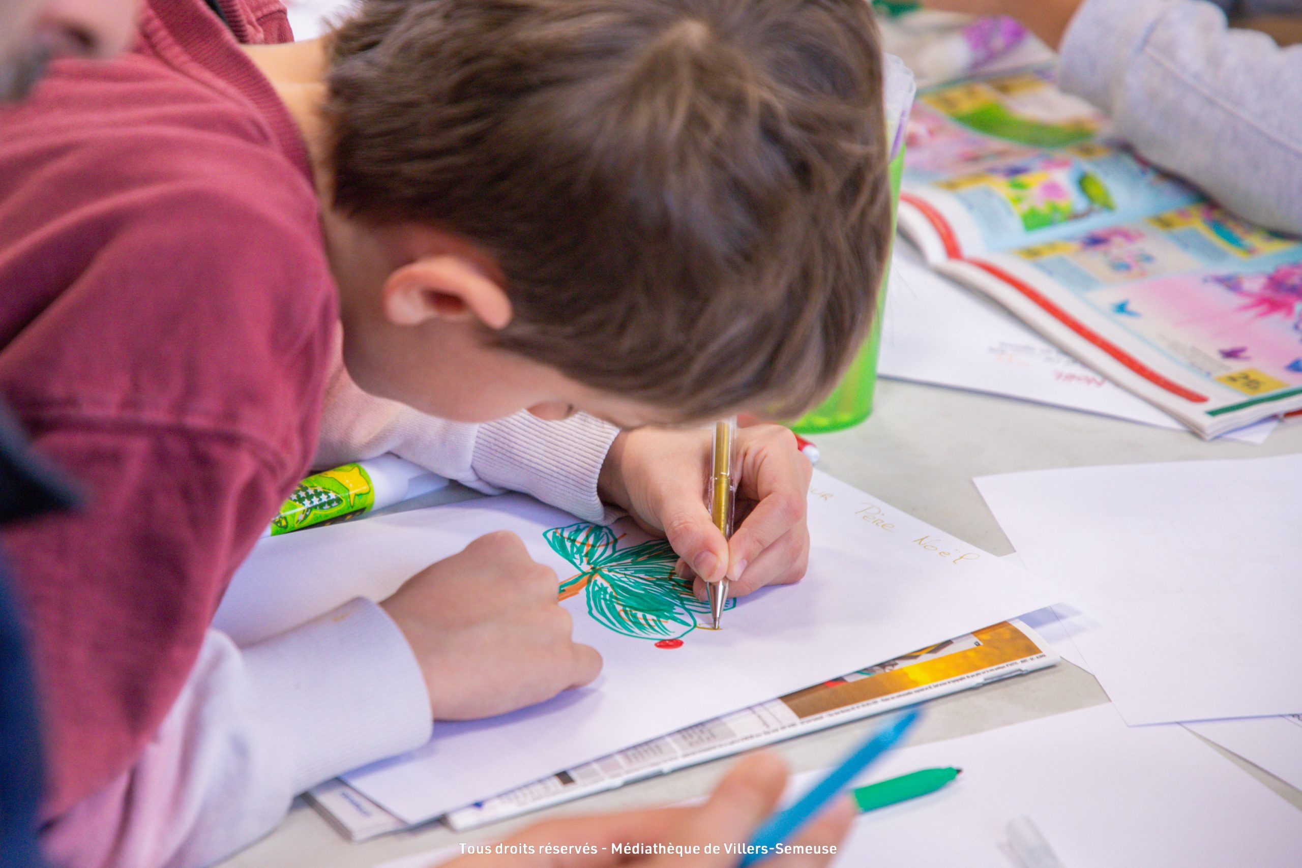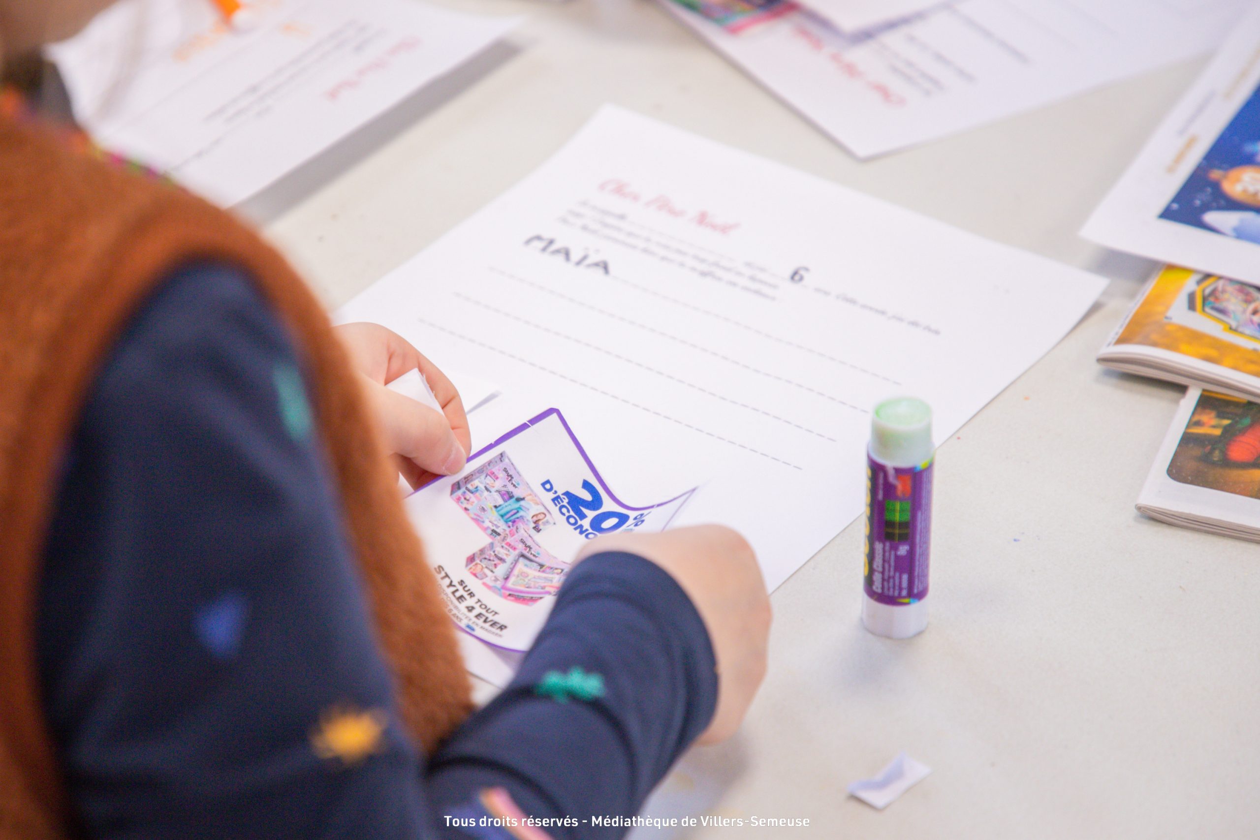 Paillettes, couleurs, dessins, collages et imagination étaient au rendez-vous du troisième et dernier atelier créatif du jour pour écrire la plus belle lettre au Père Noël à la médiathèque.