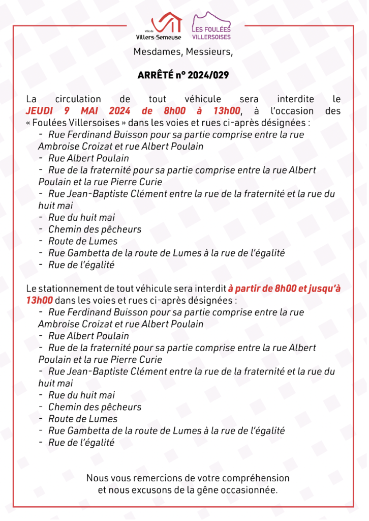 ⚠️ ATTENTION, des rues seront interdites à la circulation et au stationnement de 8h00 à la fin de l’épreuve (maxi 13h00), un flyer a été distribué dans les rues concernées et les alentours ces derniers jours ⬇️