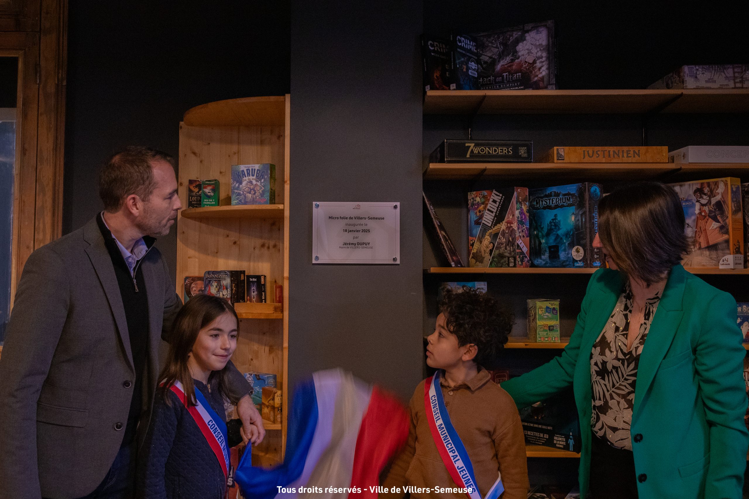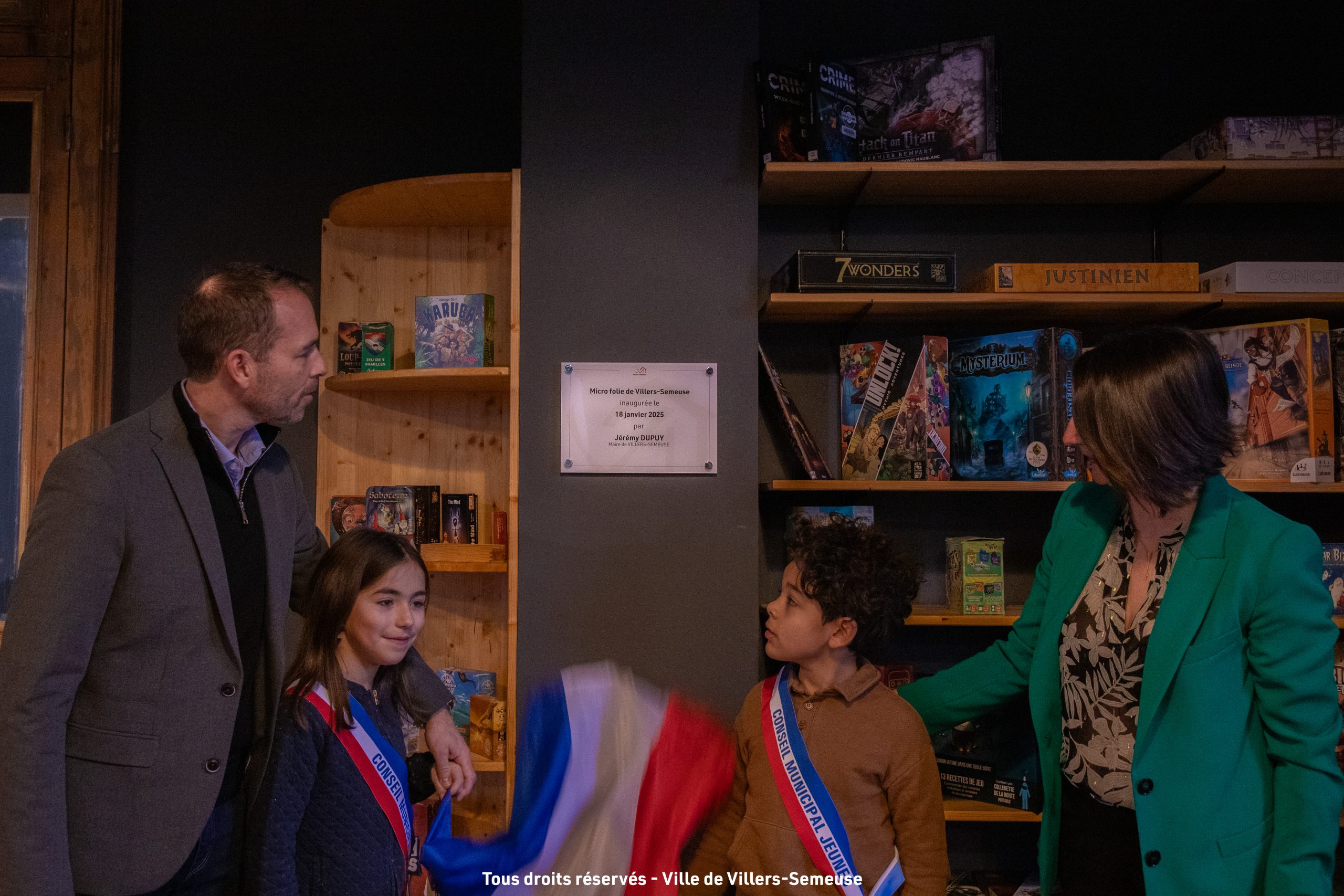 Monsieur le Maire, Jérémy Dupuy, les élus du conseil municipal, les élus du Conseil Municipal Jeunes, Virginie Rodrigues-de-Oliveira, conseillère régionale de la Région Grand-Est et Leïla Veissière, responsable opérationnel de la Villette – Régions Grand Est et Bourgogne Franche-Comté ont inauguré ce matin la micro-folie implantée à la Médiathèque de Villers-Semeuse ✅