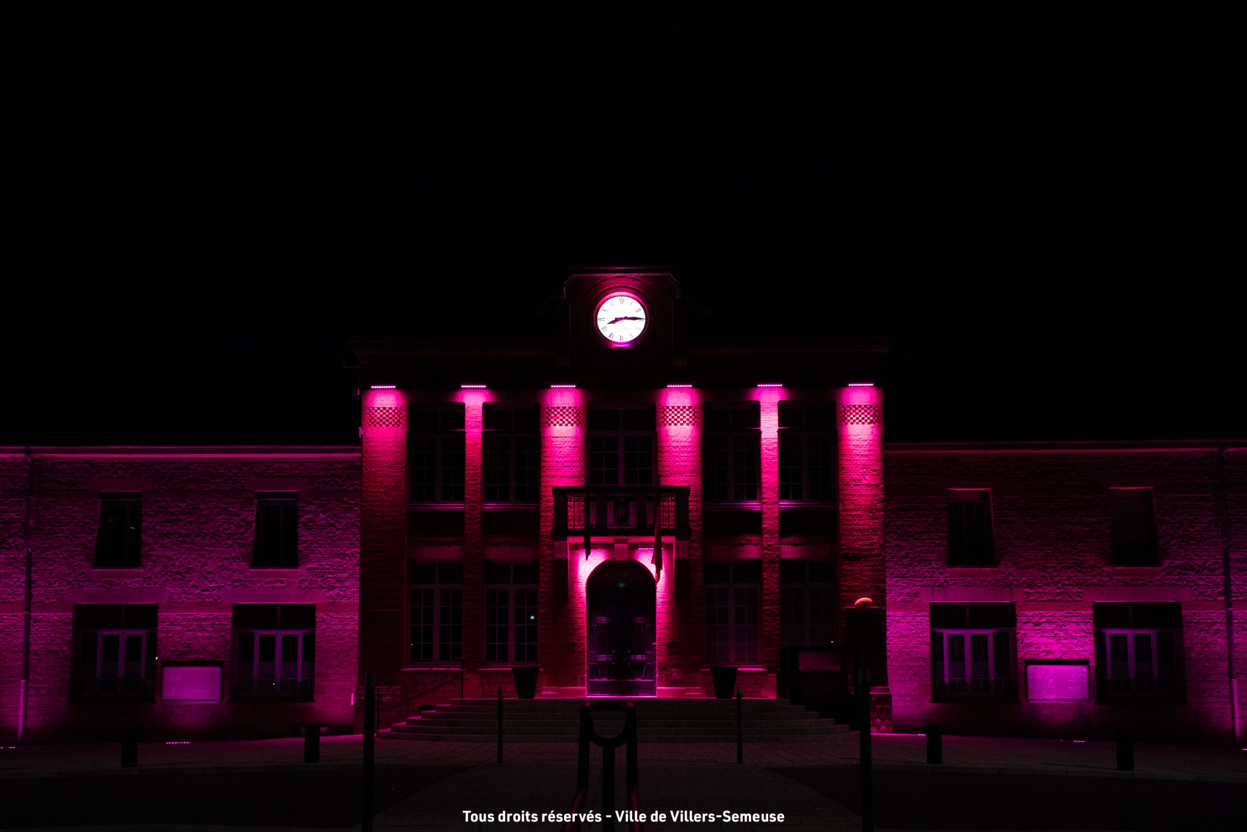 À partir d’aujourd’hui et tout le mois d’octobre, la mairie est illuminée en rose chaque matin et soir en soutien à l’opération #OctobreRose et la lutte contre le cancer du sein ❤️ Ligue Contre le Cancer 08