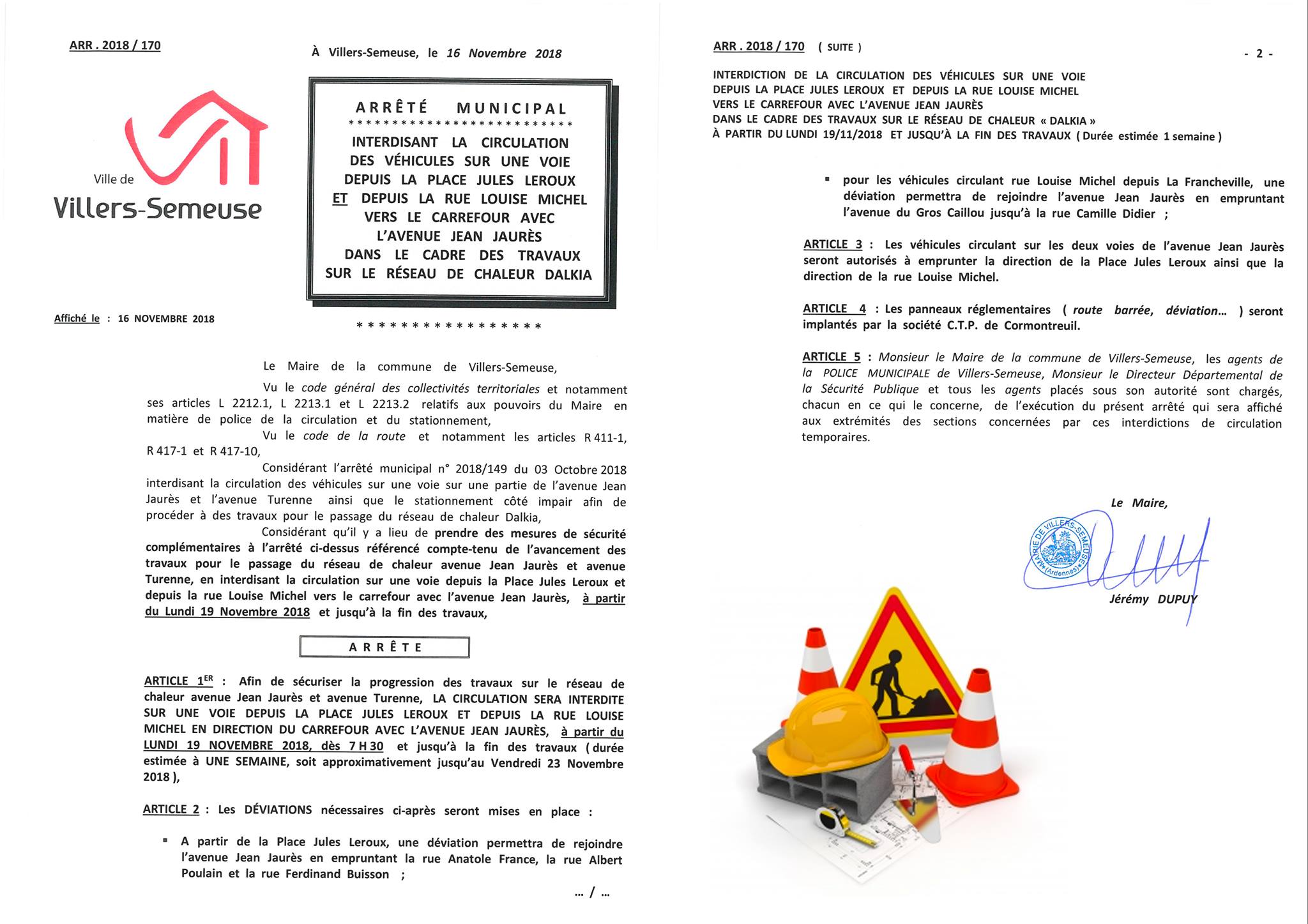 Afin de sécuriser la progression des travaux du projet « chaleur fatale » de la Ville de Charleville-Mézières et le Groupe PSA, la circulation sera interdite sur une voie depuis la place Jules Leroux et depuis la rue Louise Michel en direction du carrefour de l’avenue Jean Jaurès à partir de ce lundi et jusque vendredi (date approximative de fin de travaux pour cette portion).