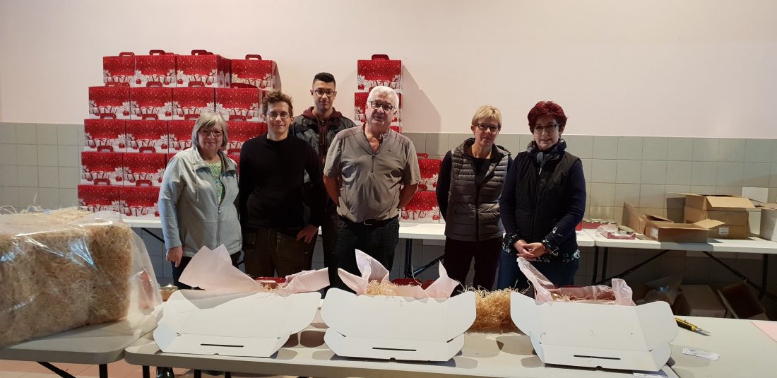 Mme Valérie Doudoux du CCAS de Villers-Semeuse, M. Rabaté, adjoint au Maire, Mme Vernot, conseillère déléguée aux seniors, Mme Rabaté et deux agents du service technique ont préparé ce jour les colis des seniors. Ils seront à venir chercher vendredi à partir de 9h à la salle des fêtes 🎁