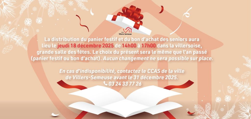 ℹ️ En cas d’indisponibilité, contactez le CCAS de la mairie de Villers-Semeuse avant le 31 décembre 2025 ⚠ distribution possible jusqu’au vendredi 9 janvier 2026 uniquement ⚠