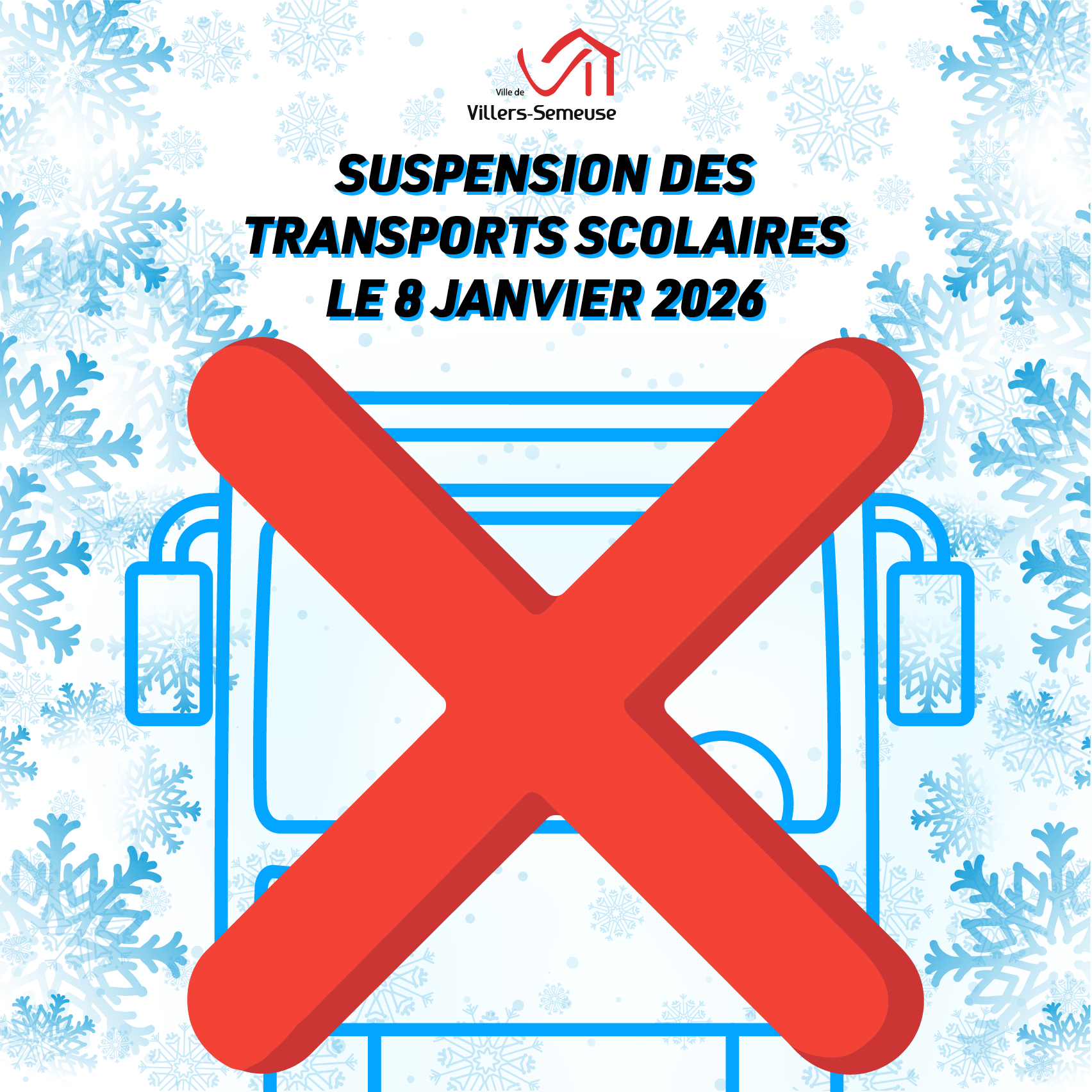 En raison des conditions climatiques actuelles et prévues, le Préfet des Ardennes nous informe de la suspension des transports scolaires également le jeudi 8 janvier 2026.