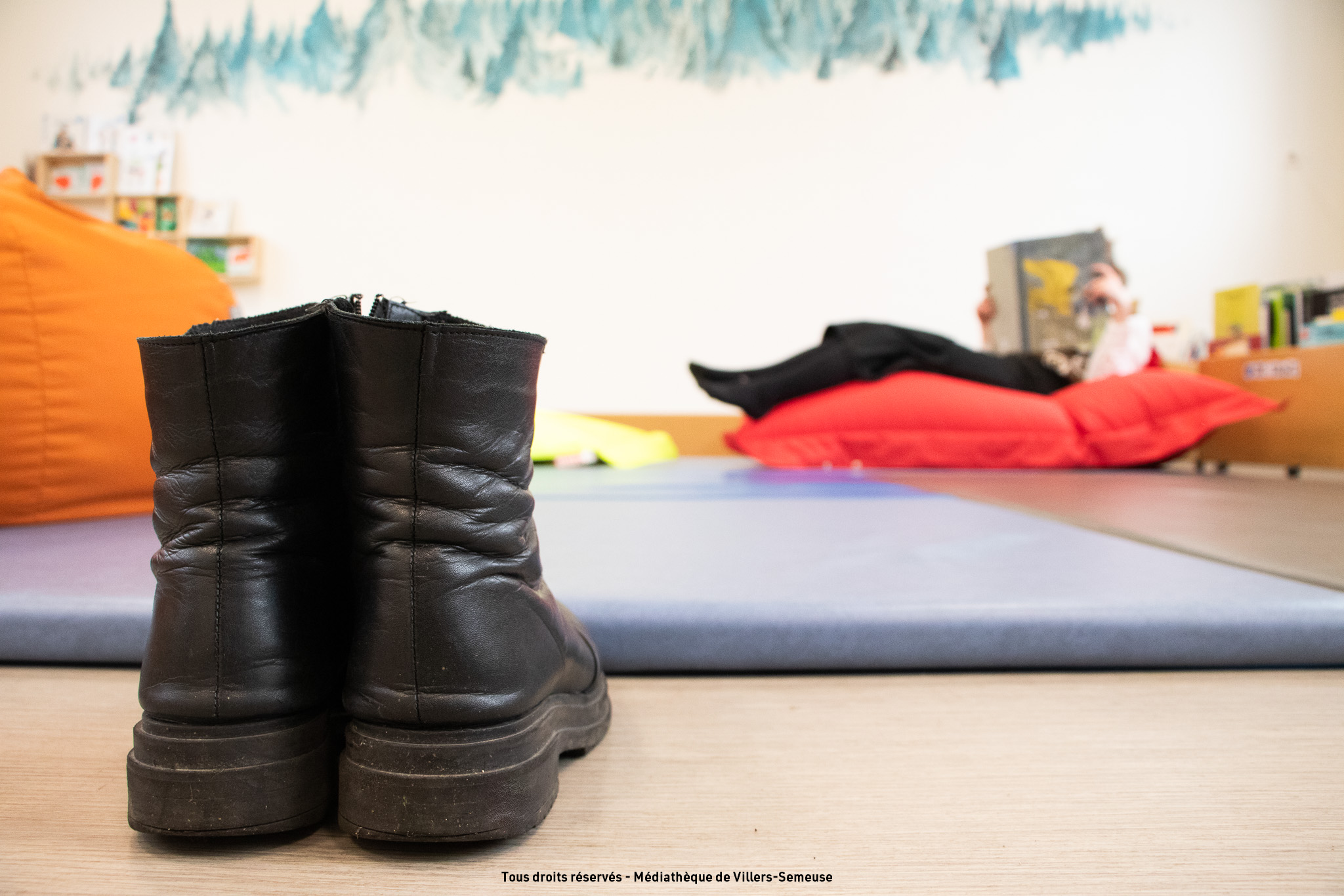 L’espace jeunesse possède un grand espace détente pour s’allonger sur les tapis ou se blottir dans nos poufs moelleux ! Petits et grands, vous êtes les bienvenus ! Seulement, pour y accéder, deux règles s’imposent … pas de chaussures, ni figures acrobatiques
