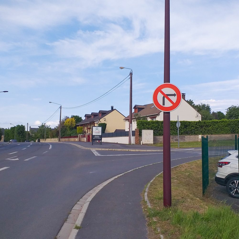 Installation d’un panneau de signalisation « interdiction de tourner à droite » à l’angle de la rue Camille Didier et avenue du Gros Caillou par les agents des services techniques hier 🚫